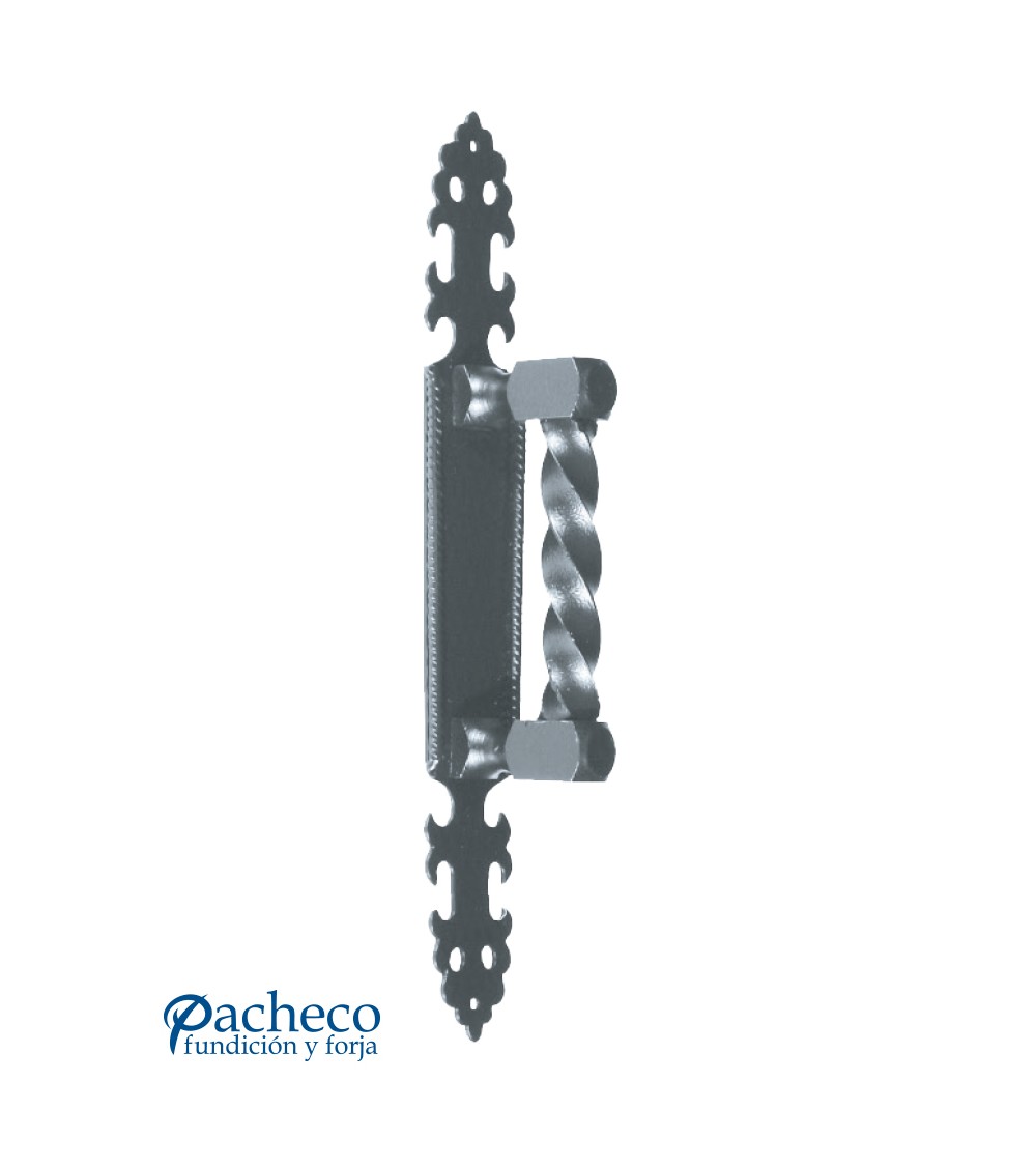 Tirador de forja entorchado con placa decorada para puerta de hierro
