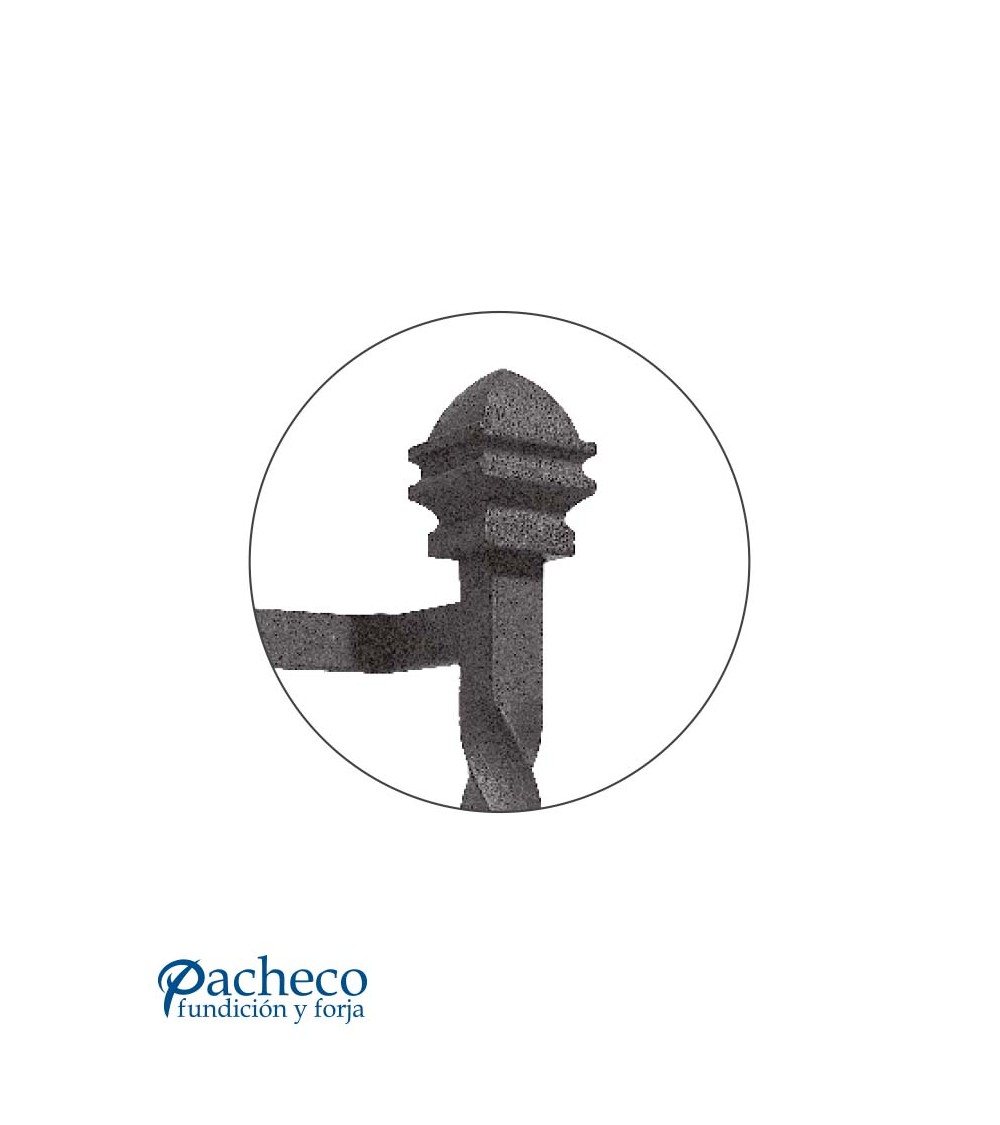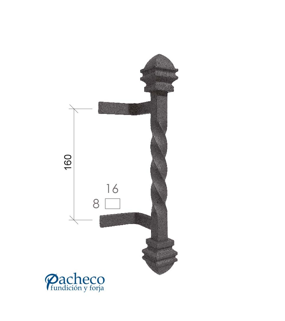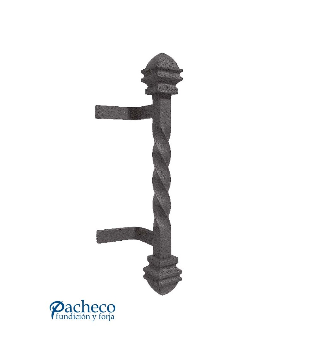 Tirador de forja entorchado con remates decorados para puerta de hierro