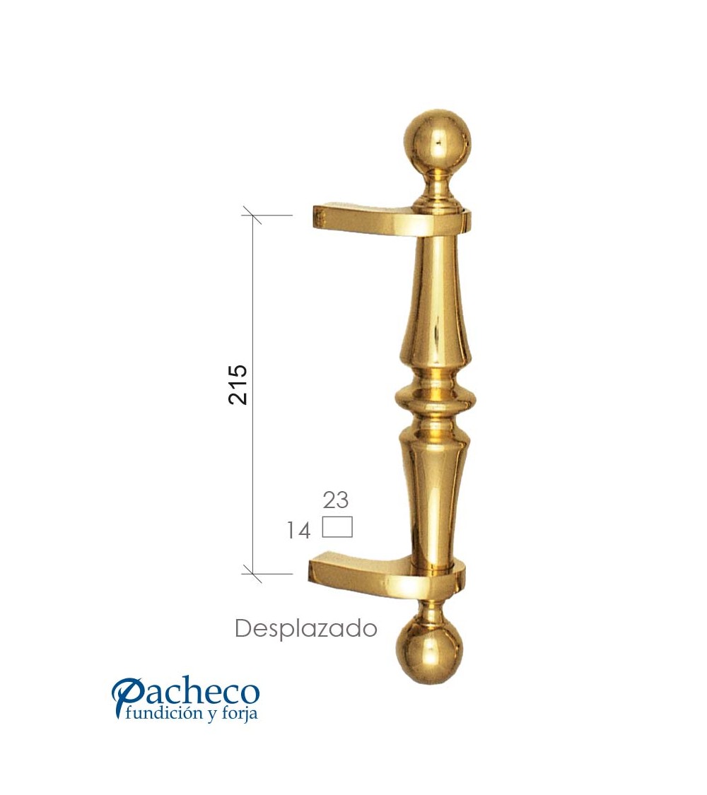 Tirador de latón brillo clásico torneado desplazado para puerta de portal