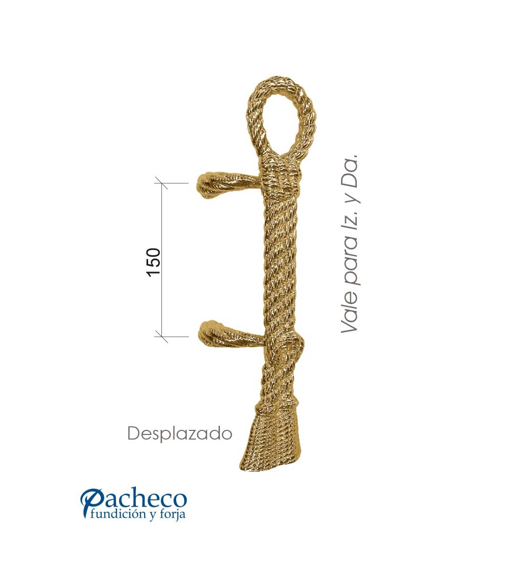 Tirador de latón brillo trenzado tipo cuerda desplazado para puerta principal