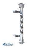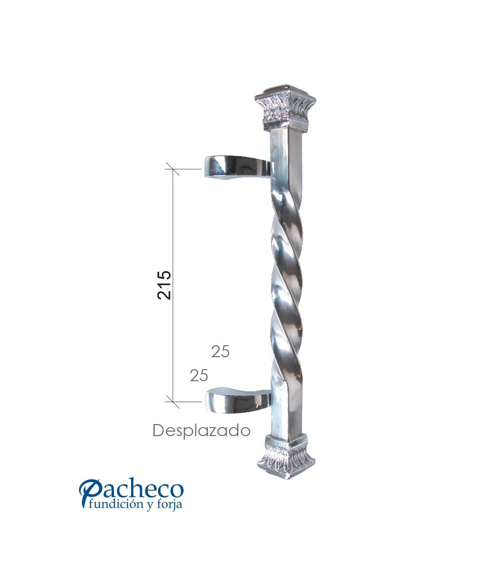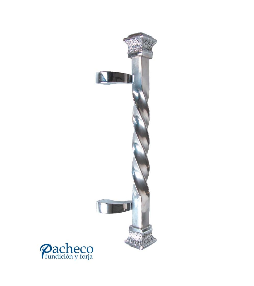 Tirador de latón cromado entorchado desplazado con base decorada para puerta de entrada