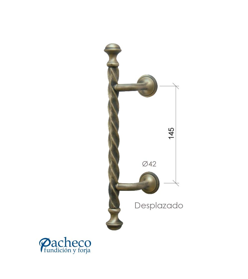 Tirador de latón patinado entorchado desplazado para puerta de entrada