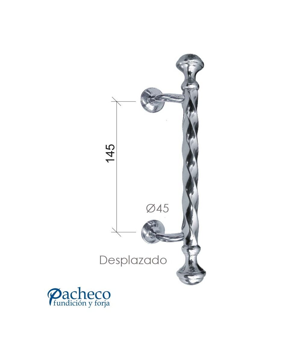 Tirador de latón cromado entorchado desplazado para puerta principal