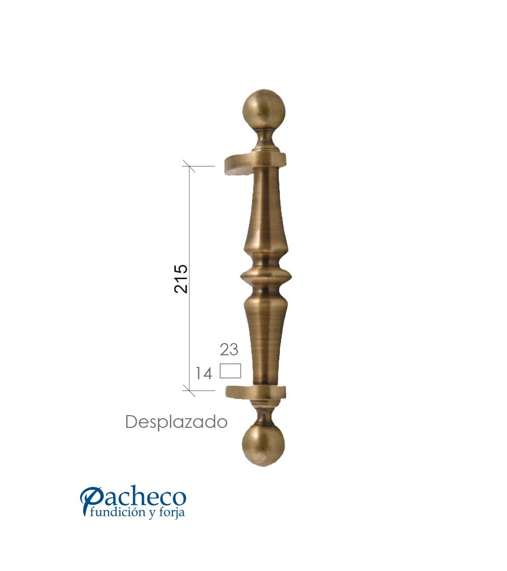 Tirador de latón patinado torneado desplazado para puerta principal