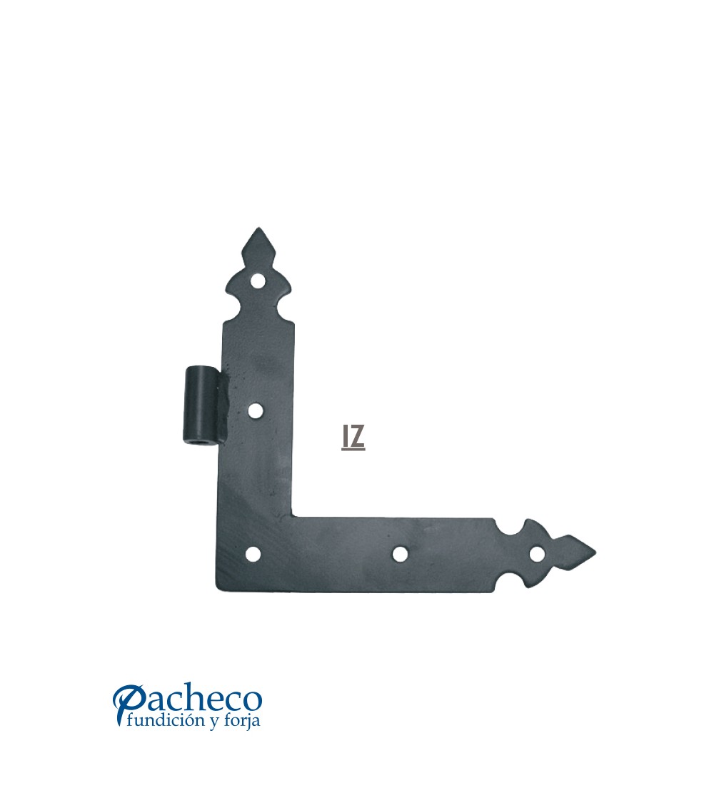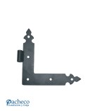 Bisagra reforzada en L de hierro negro para puertas rústicas