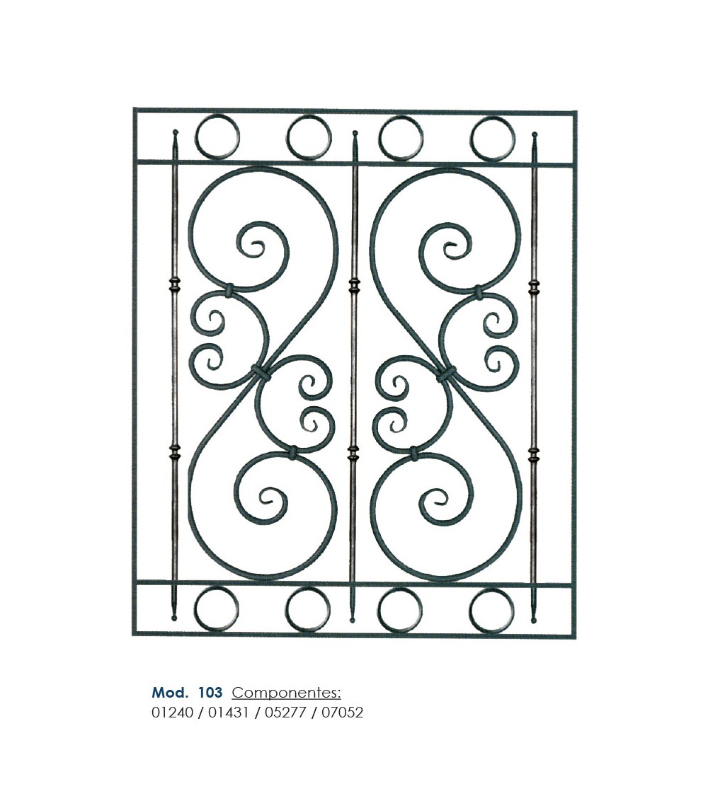 Balaustre de hierro forjado ornamental para barrotes de forja o adornos de forja para rejas con referencia 01240: