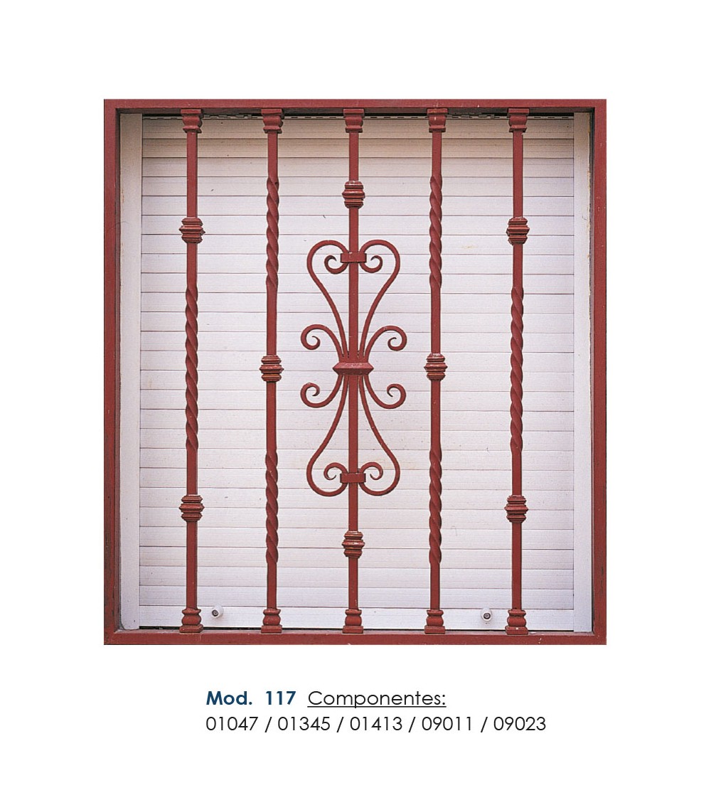 Balaustre de hierro forjado ornamental para barrotes de forja o adornos de forja para rejas con referencia 01047, referencia 01048: