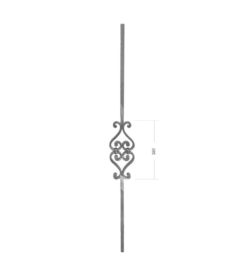 Balaustre de hierro forjado ornamental para barrotes de forja o adornos de forja para rejas con referencia 01024.12, referencia 01024.15: