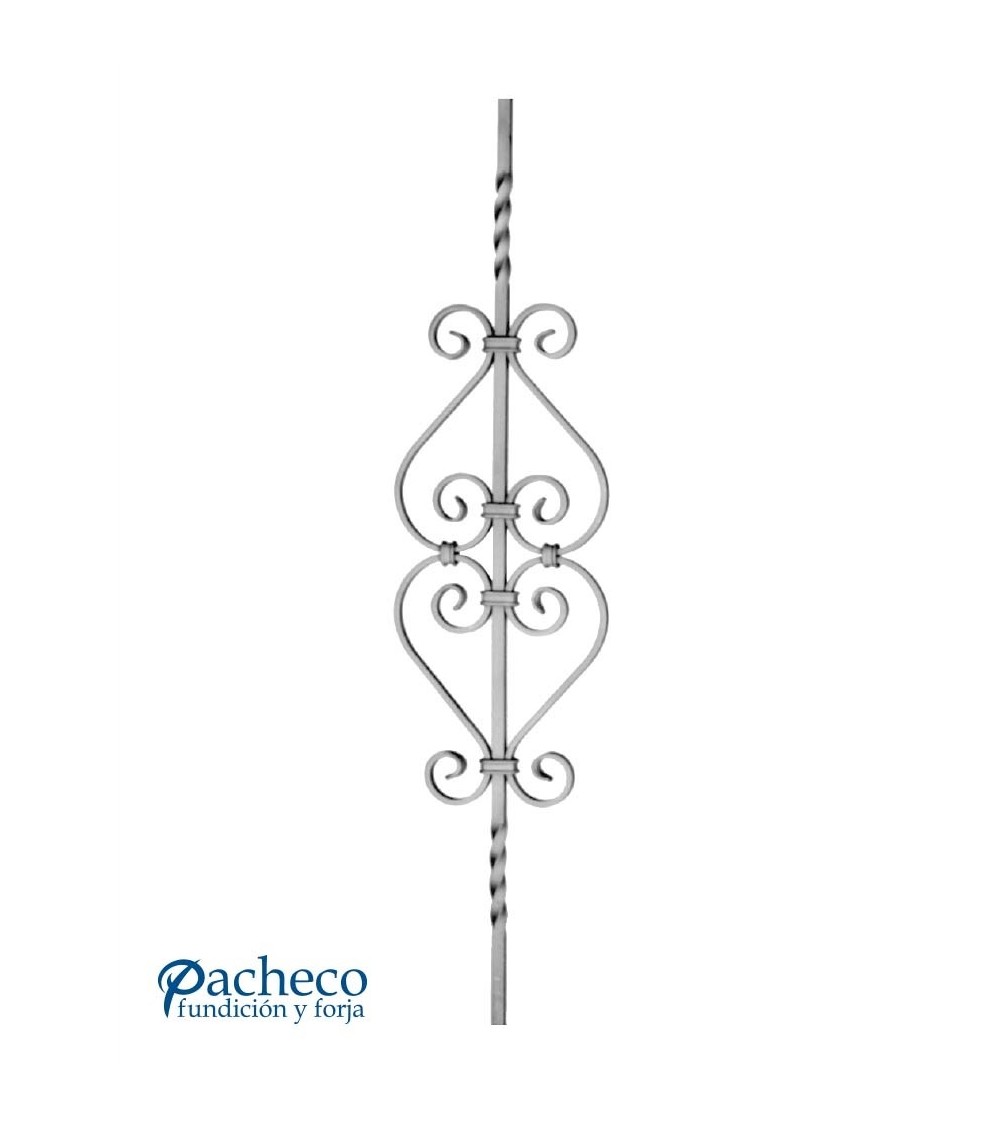 Balaustre Forjado Entorchado Doble Corazón Cuadrado 12 mm