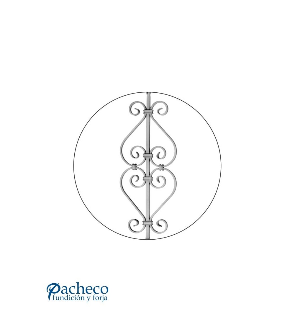 Balaustre de hierro forjado ornamental para barrotes de forja o adornos de forja para rejas con referencia 01050: