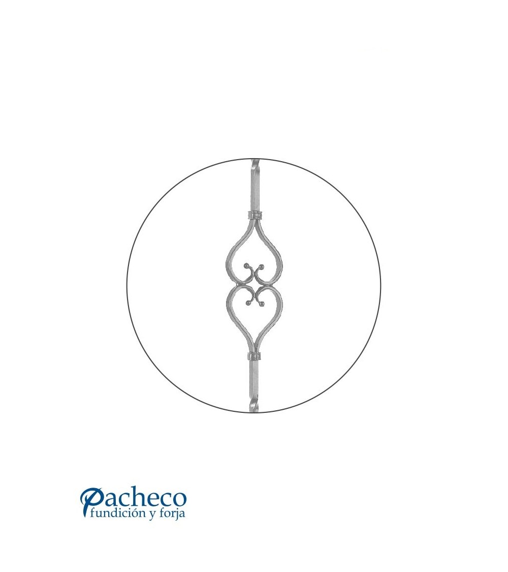 Balaustre Forjado Entorchado Doble Corazón Cuadrado 16 mm