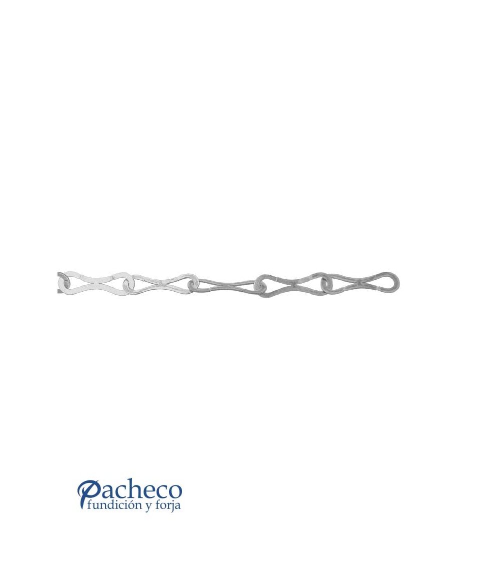 Cadena de hierro forjado con eslabones trenzados grandes en forma de ocho, ideal para mobiliario urbano, proyectos decorativos, parques y cerramientos de forja.