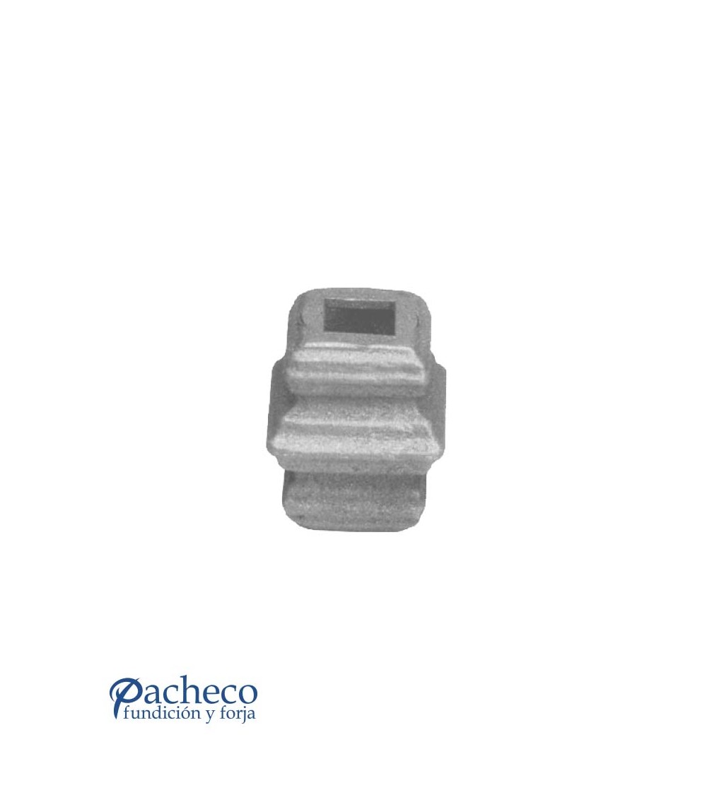 Macolla de hierro forjado utilizado como adorno de forja decorativa fabricado con hierro dulce, maleable y forjado en caliente. Este accesorio en hierro forjado se utiliza en barrotes de forja, verjas de forja o adornos de forja para rejas. Se combina con balaustres cuadrados. La medida estándar es de 45 mm alto x 40 mm ancho. Piezas y accesorios para forja a medida, también realizamos cualquier diseño de forja decorativa y forja artística. Consulta a nuestro equipo de diseño especializado. Aquí los límites del metal, los pones tú. Llámanos para informarte al 923 24 33 98 o escríbenos a info@pachecoforja.com