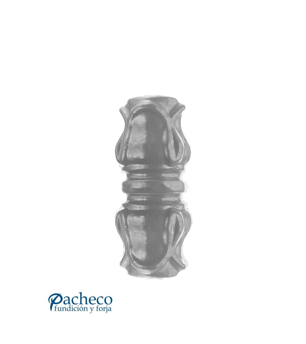 Macolla de hierro forjado utilizado como adorno de forja decorativa fabricado con hierro dulce, maleable y forjado en caliente. Este accesorio en hierro forjado se utiliza en barrotes de forja, verjas de forja o adornos de forja para rejas. Se combina con balaustres redondos. La medida estándar es de 96 mm alto x 38 mm ancho. Piezas y accesorios para forja a medida, también realizamos cualquier diseño de forja decorativa y forja artística. Consulta a nuestro equipo de diseño especializado. Aquí los límites del metal, los pones tú. Llámanos para informarte al 923 24 33 98 o escríbenos a info@pachecoforja.com