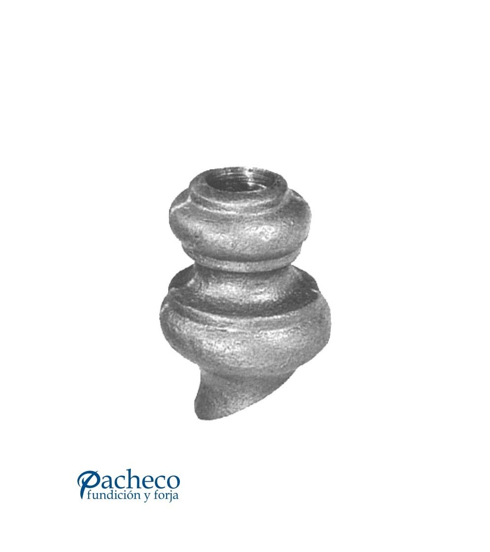 Macolla de hierro forjado utilizado como adorno de forja decorativa fabricado con hierro dulce, maleable y forjado en caliente. Este accesorio en hierro forjado se utiliza en barrotes de forja, verjas de forja o adornos de forja para rejas. Se combina con balaustres redondos. La medida estándar es de 60 mm x 40 mm ancho. Piezas y accesorios para forja a medida, también realizamos cualquier diseño de forja decorativa y forja artística. Consulta a nuestro equipo de diseño especializado. Aquí los límites del metal, los pones tú. Llámanos para informarte al 923 24 33 98 o escríbenos a info@pachecoforja.com