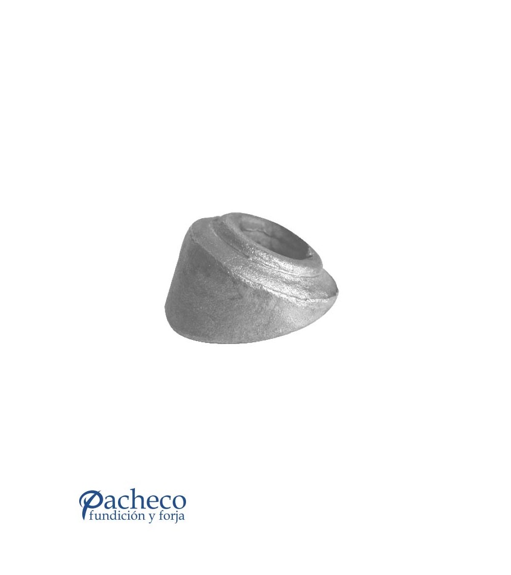 Base de hierro forjado con inclinación para escalera utilizado como adorno de forja decorativa fabricado con hierro dulce, maleable y forjado en caliente. Este accesorio en hierro forjado se utiliza en barrotes de forja, verjas de forja o adornos de forja para rejas. Se combina con balaustres redondos. La medida estándar es de 28 mm alto x 37 mm ancho o 32 mm alto x 45 mm ancho. Piezas y accesorios para forja a medida, también realizamos cualquier diseño de forja decorativa y forja artística. Consulta a nuestro equipo de diseño especializado. Aquí los límites del metal, los pones tú. Llámanos para informarte al 923 24 33 98 o escríbenos a info@pachecoforja.com