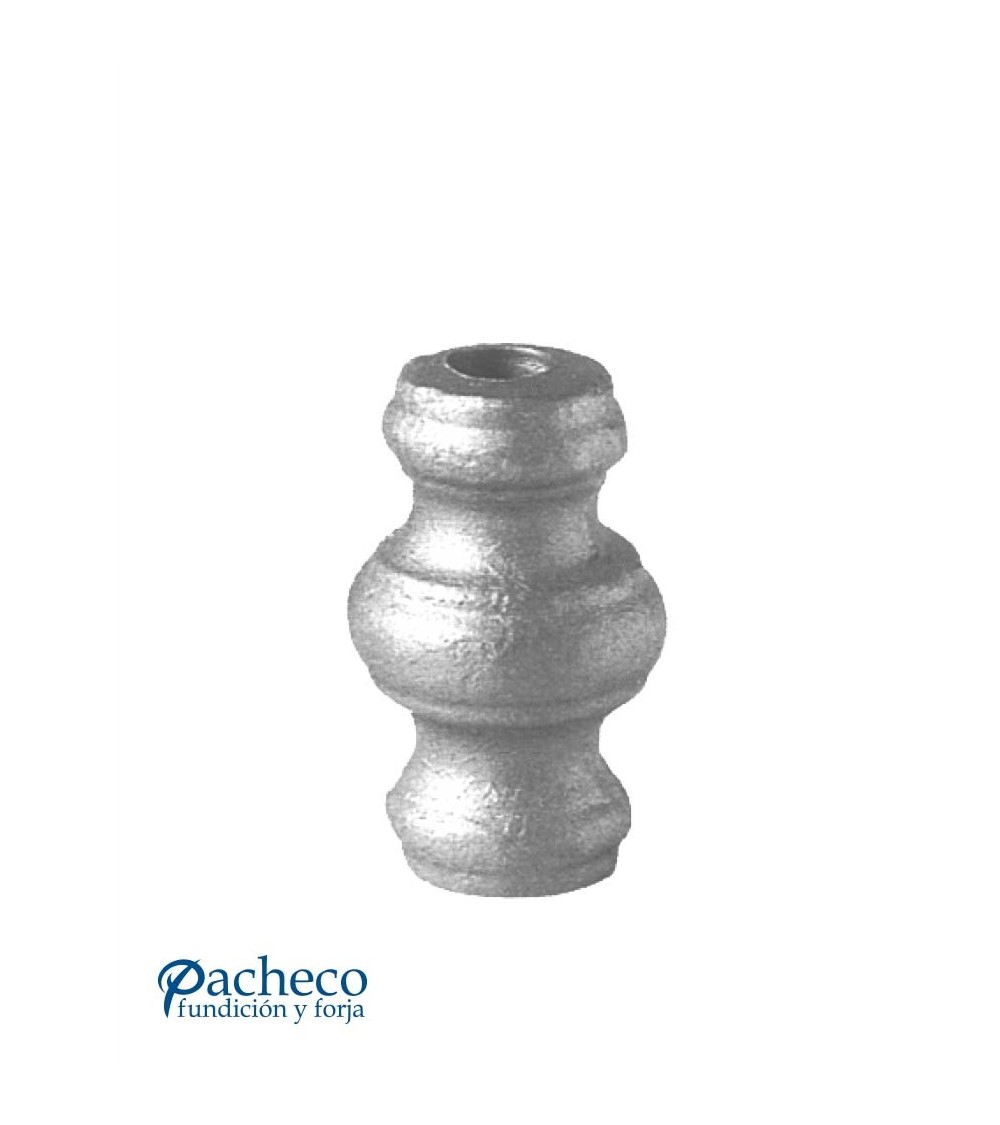 Macolla de hierro forjado utilizado como adorno de forja decorativa fabricado con hierro dulce, maleable y forjado en caliente. Este accesorio en hierro forjado se utiliza en barrotes de forja, verjas de forja o adornos de forja para rejas. Se combina con balaustres redondos. Existen varias medidas estándar. Piezas y accesorios para forja a medida, también realizamos cualquier diseño de forja decorativa y forja artística. Consulta a nuestro equipo de diseño especializado. Aquí los límites del metal, los pones tú. Llámanos para informarte al 923 24 33 98 o escríbenos a info@pachecoforja.com