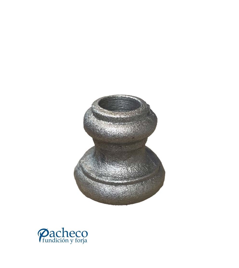 Macolla de hierro forjado utilizado como adorno de forja decorativa fabricado con hierro dulce, maleable y forjado en caliente. Este accesorio en hierro forjado se utiliza en barrotes de forja, verjas de forja o adornos de forja para rejas. Se combina con balaustres redondos. La medida estándar es de 40 mm alto x 30 mm ancho. Piezas y accesorios para forja a medida, también realizamos cualquier diseño de forja decorativa y forja artística. Consulta a nuestro equipo de diseño especializado. Aquí los límites del metal, los pones tú. Llámanos para informarte al 923 24 33 98 o escríbenos a info@pachecoforja.com