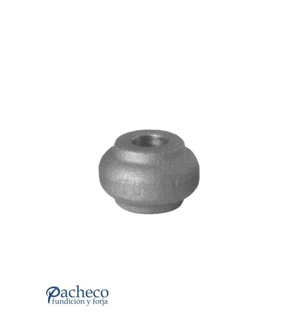 Macolla de hierro forjado utilizado como adorno de forja decorativa fabricado con hierro dulce, maleable y forjado en caliente. Este accesorio en hierro forjado se utiliza en barrotes de forja, verjas de forja o adornos de forja para rejas. Se combina con balaustres redondos. La medida estándar es de 25 mm alto x 37 mm ancho o 20 mm alto x 38 mm ancho. Piezas y accesorios para forja a medida, también realizamos cualquier diseño de forja decorativa y forja artística. Consulta a nuestro equipo de diseño especializado. Aquí los límites del metal, los pones tú. Llámanos para informarte al 923 24 33 98 o escríbenos a info@pachecoforja.com
