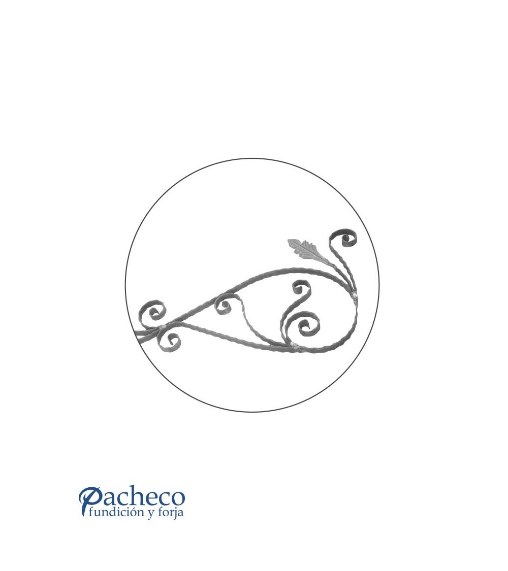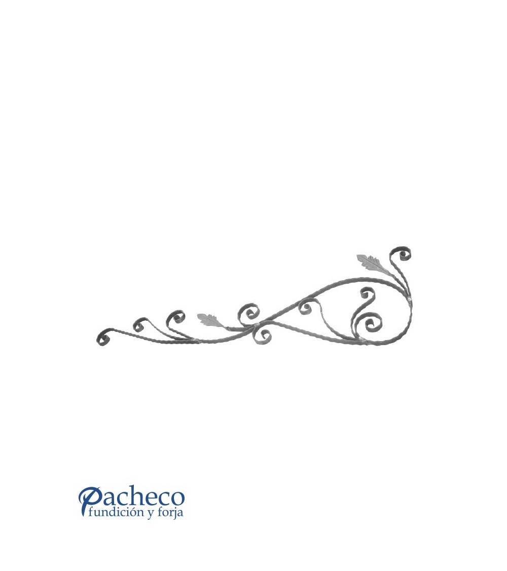 Montante de hierro forjado utilizado como forja decorativa fabricado con hierro dulce, maleable y forjado en caliente. Este accesorio en hierro forjado se utiliza en ventanas de hierro forjado. Se puede combinar con balaustres, balaustradas y jabalcones. La medida estándar es de 530 mm alto x 1630 mm ancho. Piezas y accesorios para forja a medida, también realizamos cualquier diseño de forja decorativa y forja artística. Consulta a nuestro equipo de diseño especializado. Aquí los límites del metal, los pones tú. Llámanos para informarte al 923 24 33 98 o escríbenos a info@pachecoforja.com