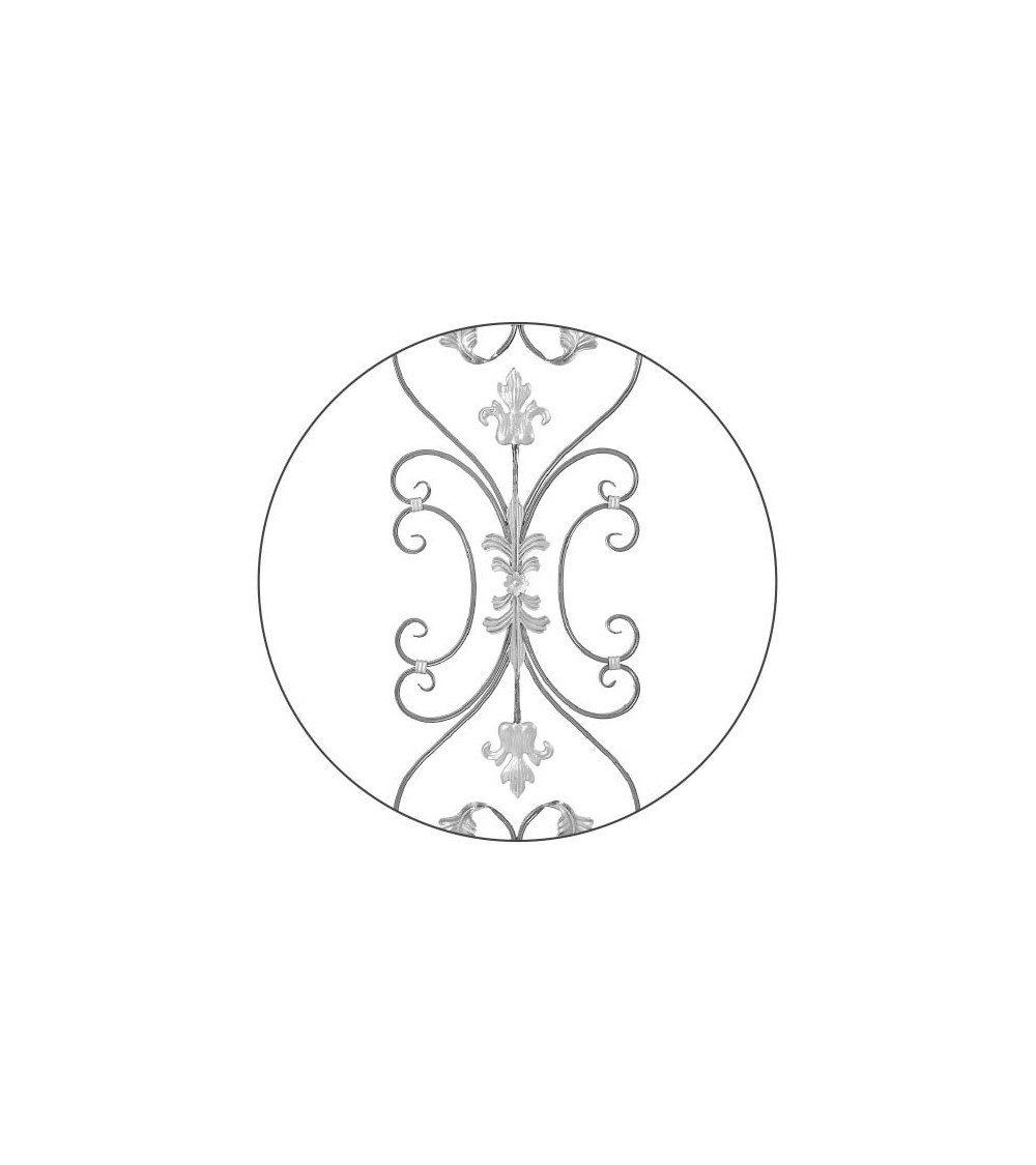 Balaustrada de hierro forjado decorativa con volutas en C y hojas ornamentales, fabricada con hierro dulce y forjado en caliente con referencia 01455: