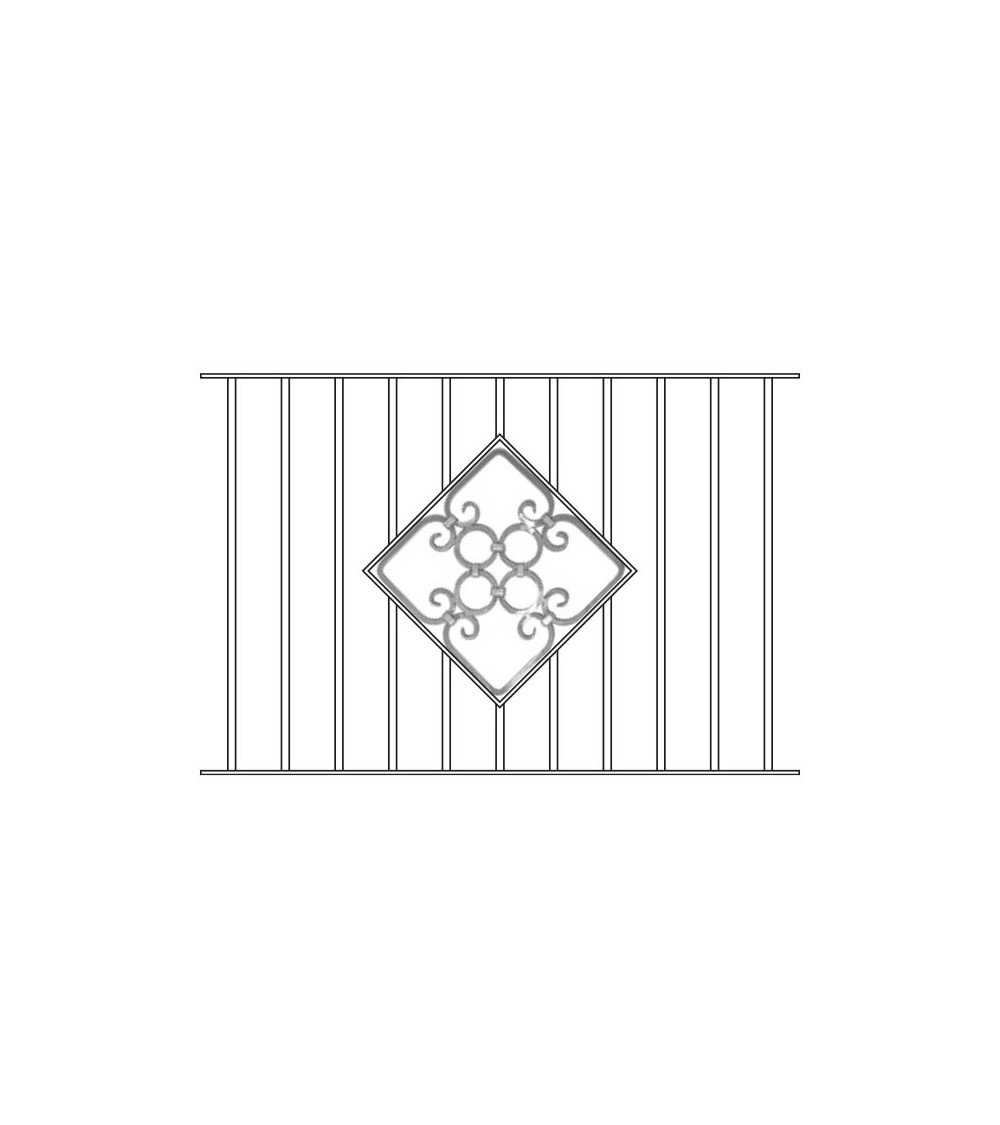 Balaustrada de hierro forjado con diseño cuadrado y aros centrales, fabricada con hierro dulce y forjado en caliente con referencia 01438.44: