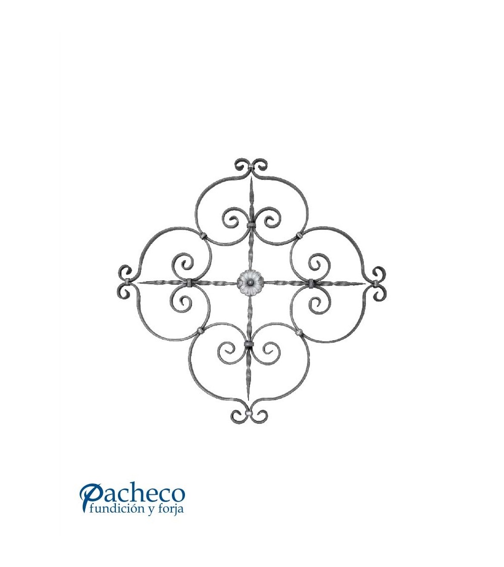Panel de hierro forjado utilizado como forja decorativa fabricado con hierro dulce, maleable y forjado en caliente. Este accesorio en hierro forjado se utiliza en balcones y barandillas de escalera, verjas de hierro forjado, rejas y cancelas, muebles de forja La medida estándar es de 960 mm alto x 960 mm ancho. Piezas y accesorios para forja a medida, también realizamos cualquier diseño de forja decorativa y forja artística. Consulta a nuestro equipo de diseño especializado. Aquí los límites del metal, los pones tú. Llámanos para informarte al 923 24 33 98 o escríbenos a info@pachecoforja.com