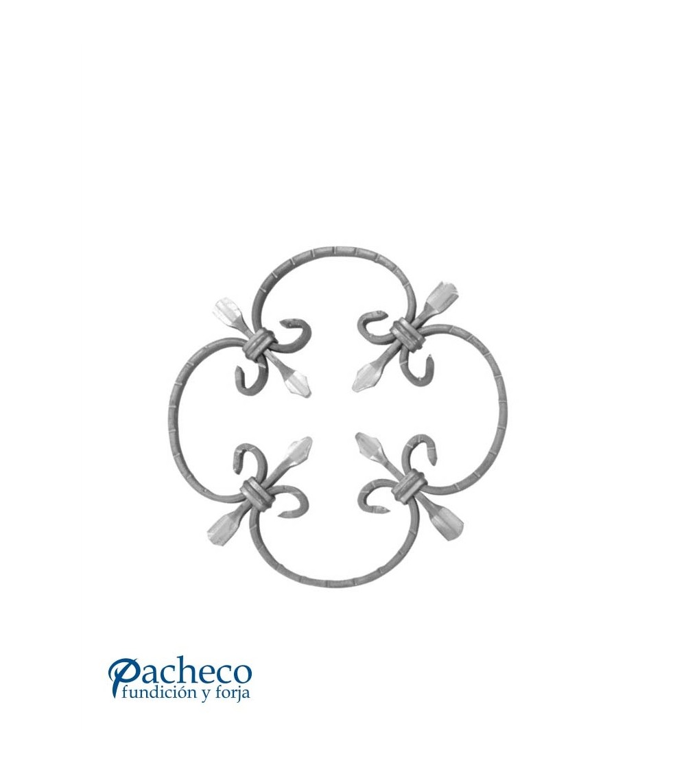 Panel de hierro forjado utilizado como forja decorativa fabricado con hierro dulce, maleable y forjado en caliente. Este accesorio en hierro forjado se utiliza en balcones y barandillas de escalera, verjas de hierro forjado, rejas y cancelas, muebles de forja La medida estándar es de 250 mm alto x 250 mm ancho. Piezas y accesorios para forja a medida, también realizamos cualquier diseño de forja decorativa y forja artística. Consulta a nuestro equipo de diseño especializado. Aquí los límites del metal, los pones tú. Llámanos para informarte al 923 24 33 98 o escríbenos a info@pachecoforja.com