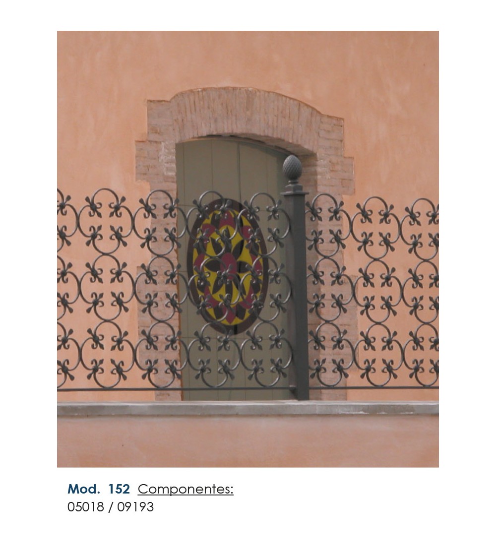 Panel de hierro forjado utilizado como forja decorativa. Fabricado con hierro dulce, maleable y forjado en caliente para el montaje de barandillas con referencia 05018:
