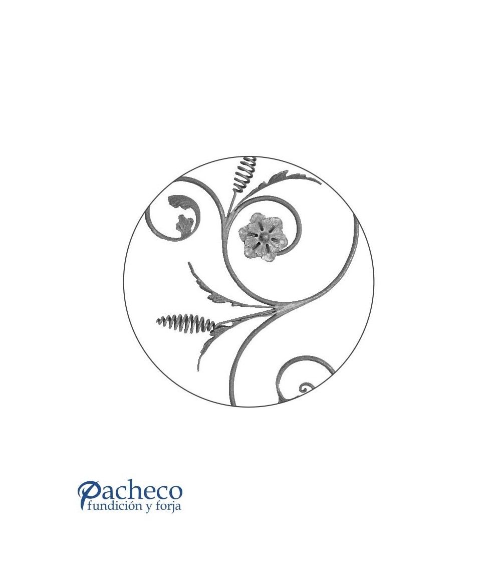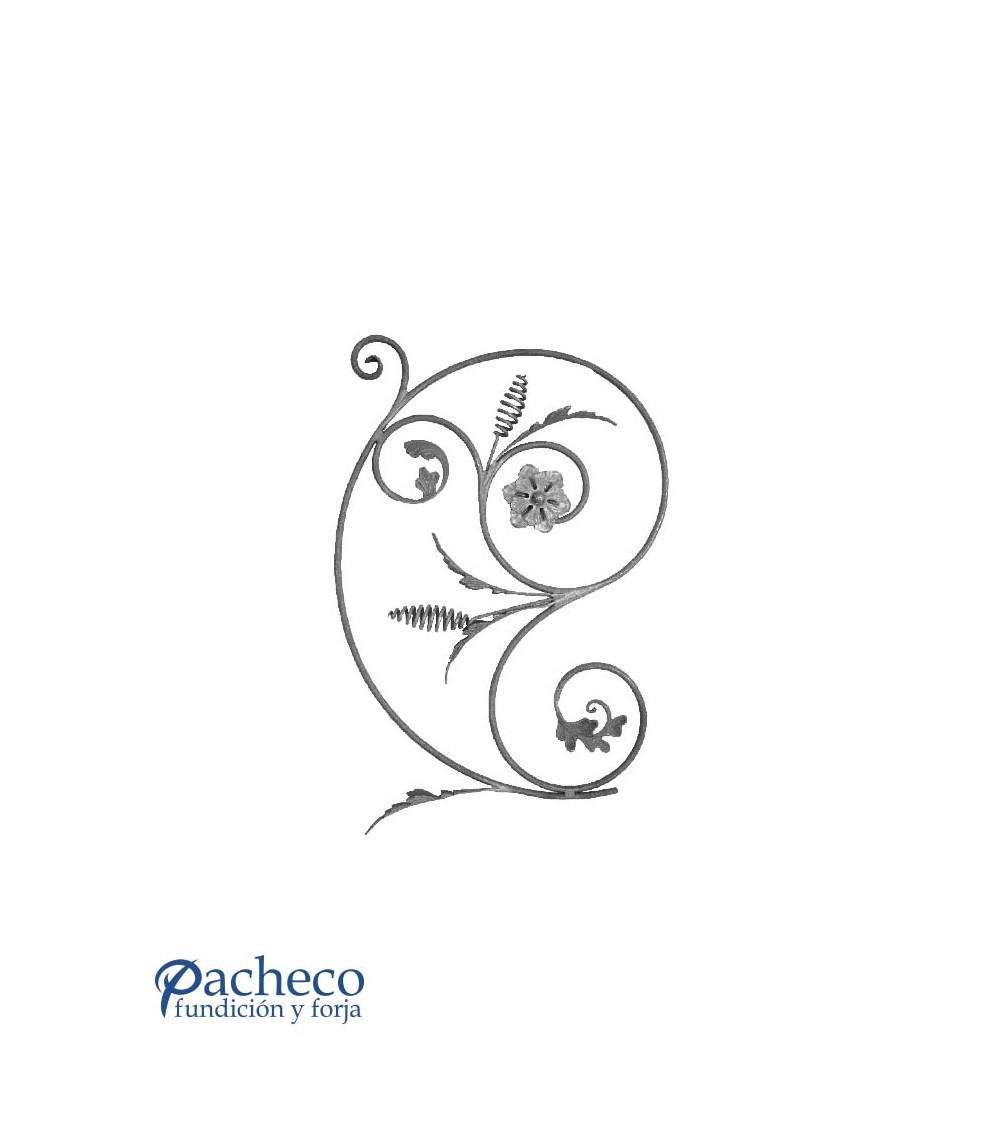 Balaustrada de hierro forjado utilizada como forja decorativa con diseño floral y volutas, fabricada con hierro dulce y forjado en caliente con referencia 05002.30: