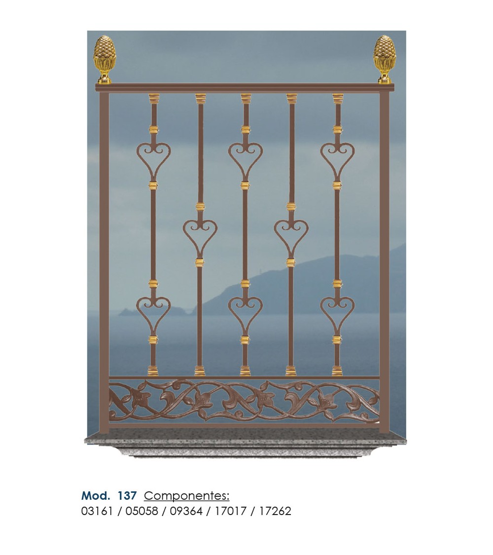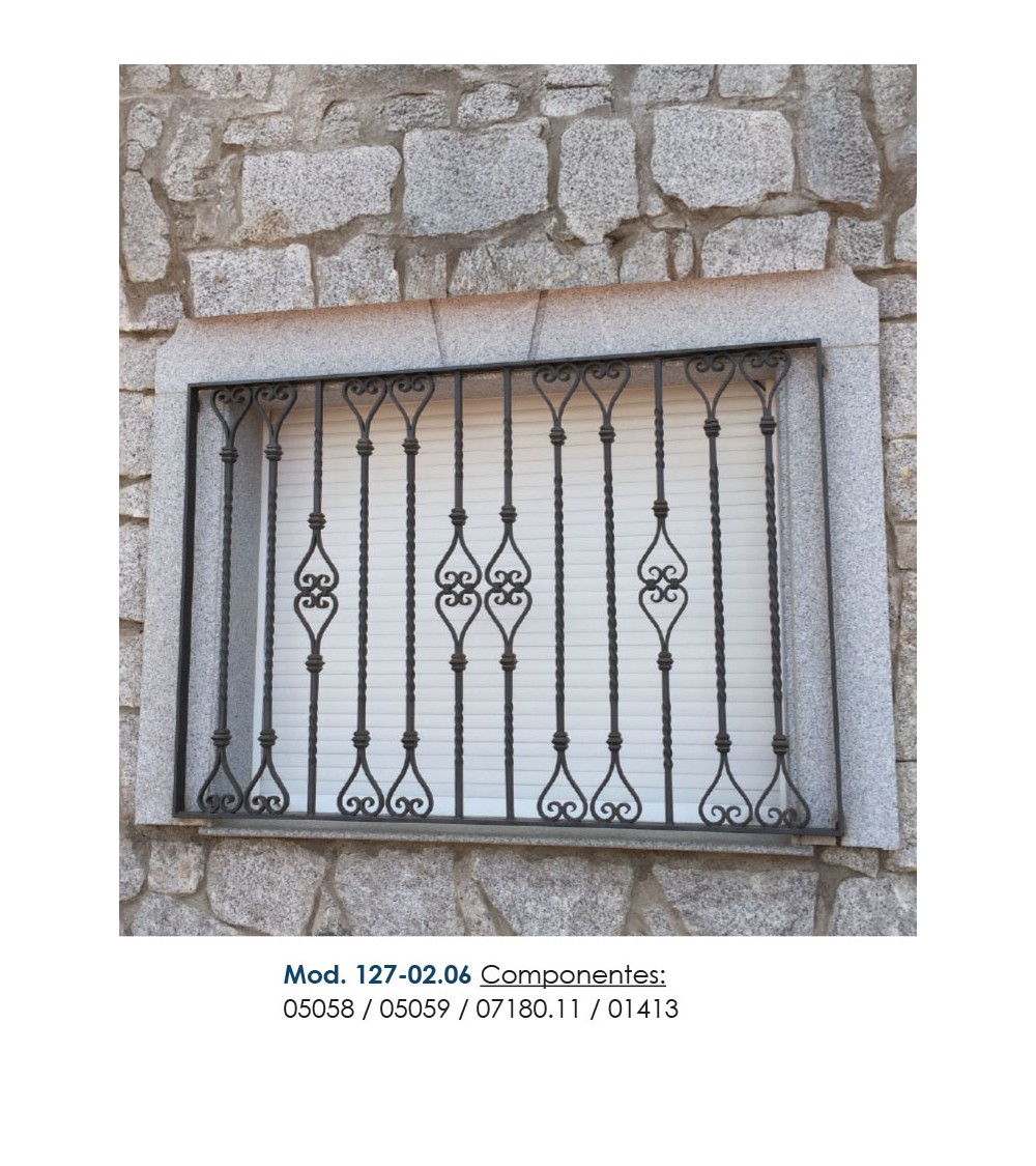 · Este accesorio en hierro forjado se utiliza como adorno de forja para rejas, ventanas de forja o balcones de forja. Se combina con balaustres.