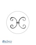 · Este accesorio en hierro forjado se utiliza como adorno de forja para rejas, ventanas de forja o balcones de forja. Se combina con balaustres.