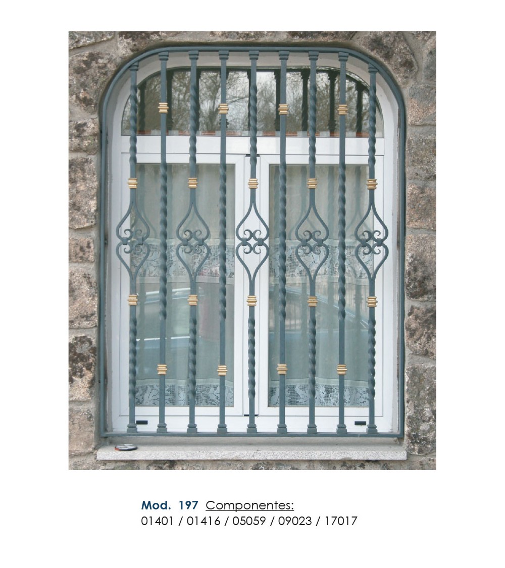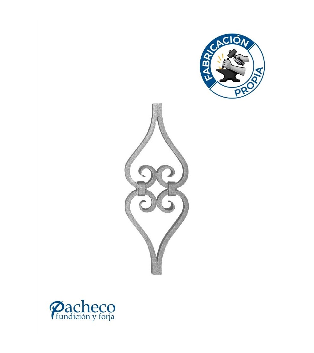 · Este accesorio en hierro forjado se utiliza como adorno de forja para rejas, ventanas de forja o balcones de forja. Se combina con balaustres.