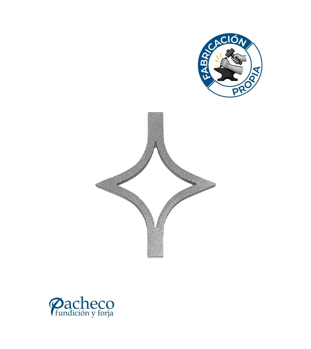Pieza central de hierro forjado utilizado como adorno de forja decorativa. Fabricado con hierro dulce, maleable y forjado en caliente para la sujeción de rejas o vallas de hierro forjado con referencia 05062 y referencia 05062.01: