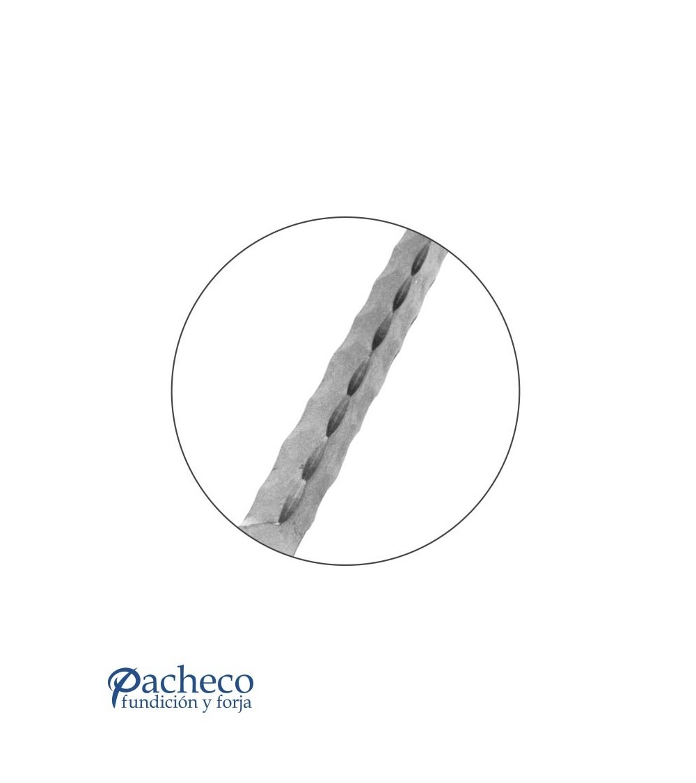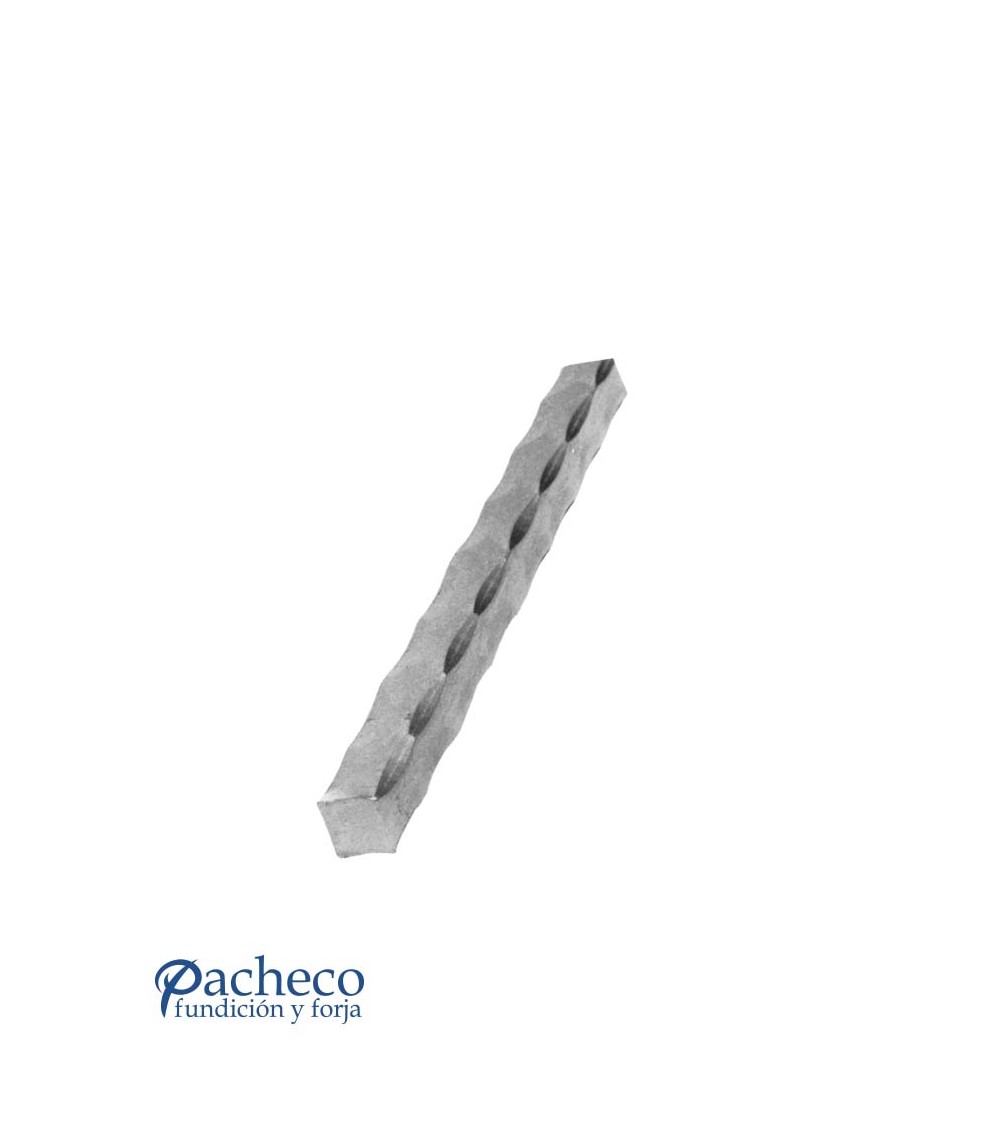 Barra grabada de hierro forjado, utilizado como forja decorativa. Fabricado con hierro dulce, maleable y forjado en caliente, con referencia 03117, referencia 03118, referencia 03119 y referencia 03120: