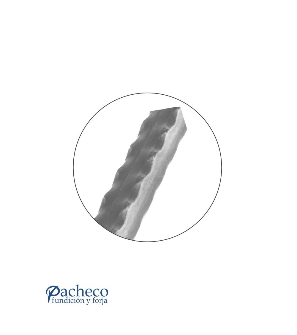 Tubo machado de hierro forjado o barra castellana, utilizado como forja decorativa. Fabricado con hierro dulce, maleable y forjado en caliente, con referencia 03122, referencia 03123 y referencia 03124: