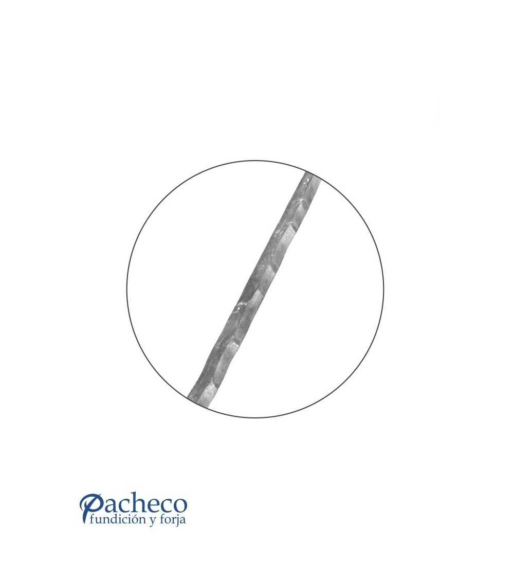 Barra grabada de hierro forjado, utilizado como forja decorativa. Fabricado con hierro dulce, maleable y forjado en caliente, con referencia 03120.01 y referencia 03121: