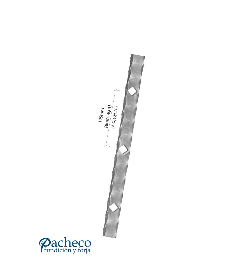 Ref.03116.01: 2000 mm alto, pletina de 40 mm x 8 mm. 15 perforaciones rombo de 16 mm de lado (125 mm entre ejes).