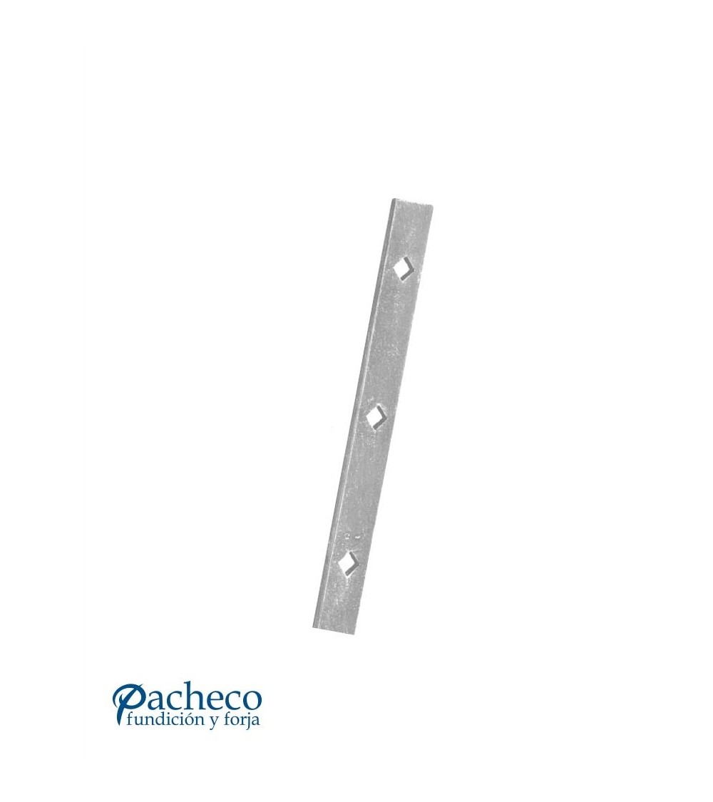 Ref.03092: 2000 mm alto, pletina de 40 mm x 8 mm. 12 agujeros de rombo de 20 mm (150 mm entre ejes).