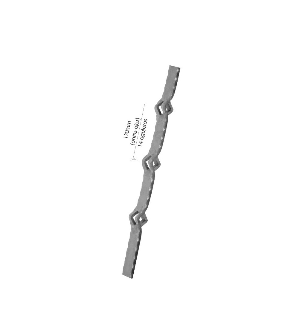 · Esta barra perforada de hierro forjado se emplea en la fabricación de barrotes de forja, barandales de forja, cancelas, cenefas para rejas, cercas, vallas, enrejados