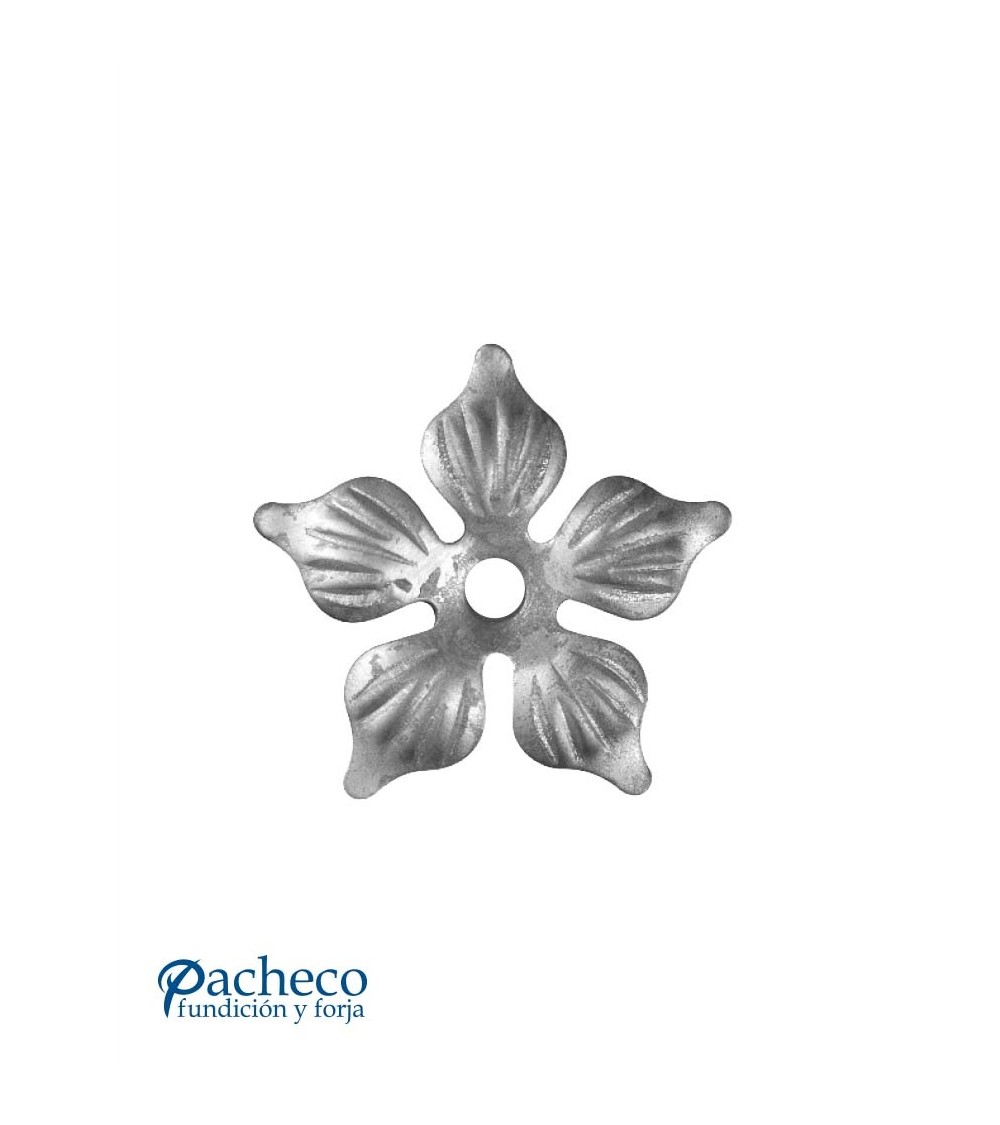 Adorno de hierro forjado en forma de flor utilizado como adorno de forja decorativa. Fabricado con hierro dulce, maleable y forjado en caliente para la decoración de rejas o vallas de hierro forjado con referencia 07357.08: