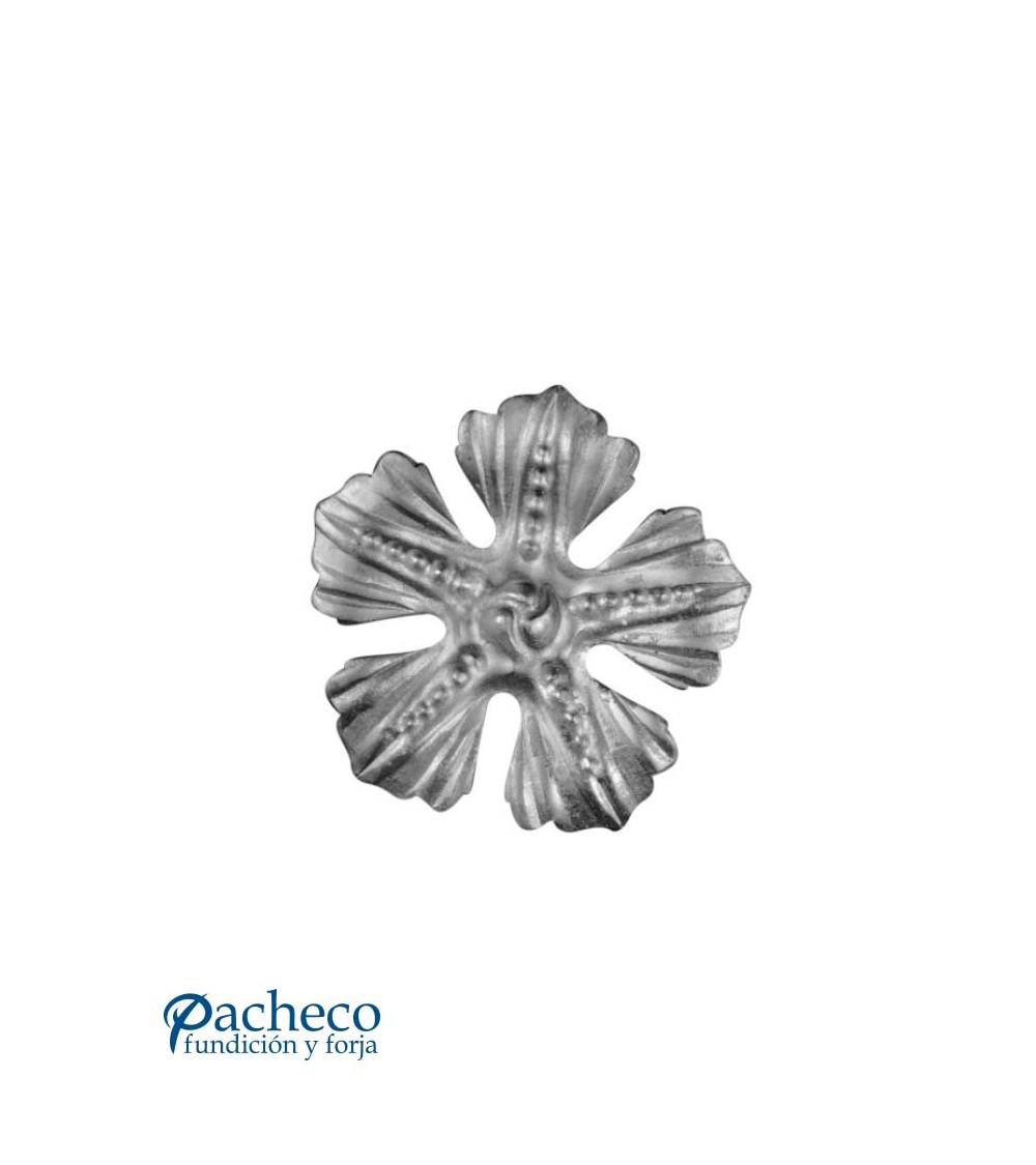 Adorno de hierro forjado en forma de flor utilizado como adorno de forja decorativa. Fabricado con hierro dulce, maleable y forjado en caliente para la decoración de rejas o vallas de hierro forjado con referencia 07357.19: