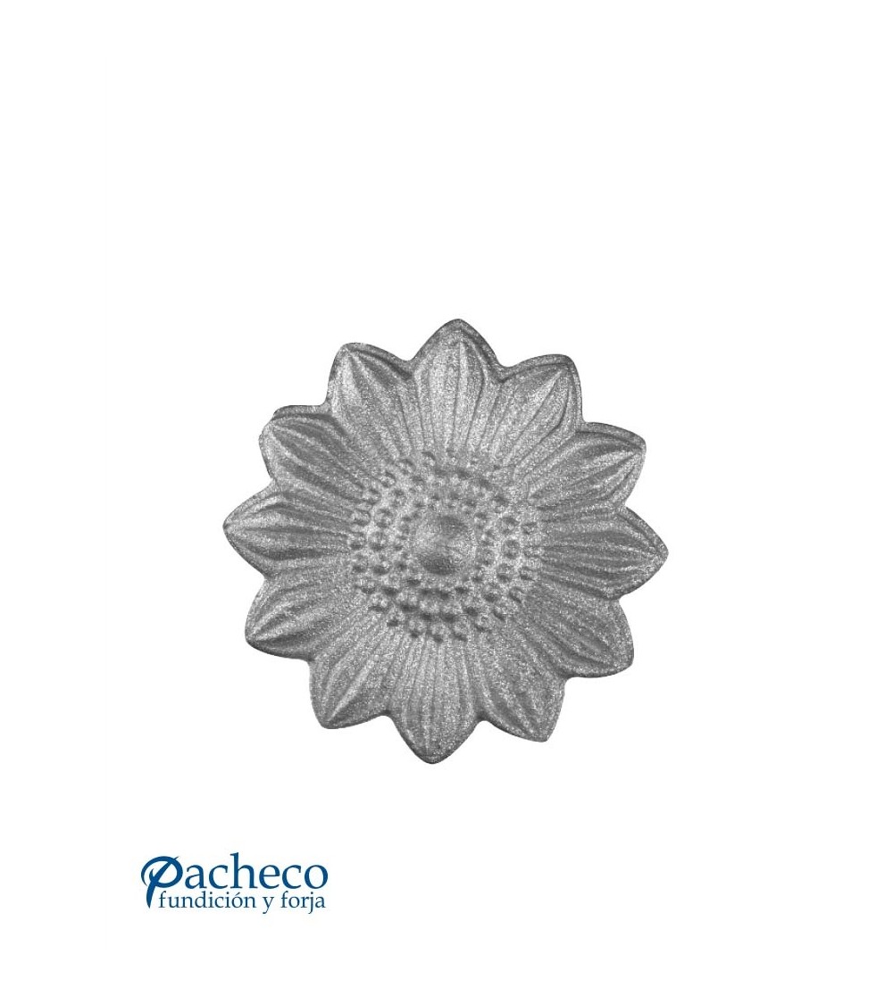 Adorno de hierro forjado en forma de flor utilizado como adorno de forja decorativa. Fabricado con hierro dulce, maleable y forjado en caliente para la decoración de rejas o vallas de hierro forjado con referencia 07344.10: