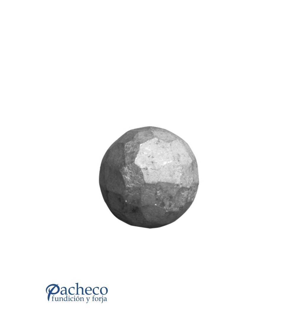 Bola de hierro forjado martilleada utilizada como adorno de forja decorativa fabricada con hierro dulce, maleable y forjado en caliente. Este accesorio en hierro forjado se utiliza en barrotes de forja, verjas de forja o adornos de forja para rejas. La medida estándar es de 20 mm de diámetro, 30 mm de diámetro, 40 mm de diámetro, 50 mm de diámetro y 60 mm de diámetro. Piezas y accesorios para forja a medida, también realizamos cualquier diseño de forja decorativa y forja artística. Consulta a nuestro equipo de diseño especializado. Aquí los límites del metal, los pones tú. Llámanos para informarte al 923 24 33 98 o escríbenos a info@pachecoforja.com