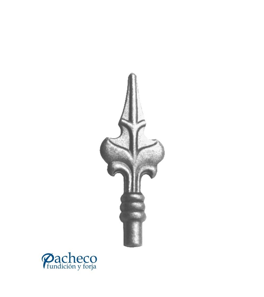 Lanza de hierro forjado utilizado como adorno de forja decorativa fabricado con hierro dulce, maleable y forjado en caliente. Este accesorio en hierro forjado se utiliza como barrotes de forja, verjas de forja. La medida estándar es de 145 mm alto x 55 mm ancho. Piezas y accesorios para forja a medida, también realizamos cualquier diseño de forja decorativa y forja artística. Consulta a nuestro equipo de diseño especializado. Aquí los límites del metal, los pones tú. Llámanos para informarte al 923 24 33 98 o escríbenos a info@pachecoforja.com