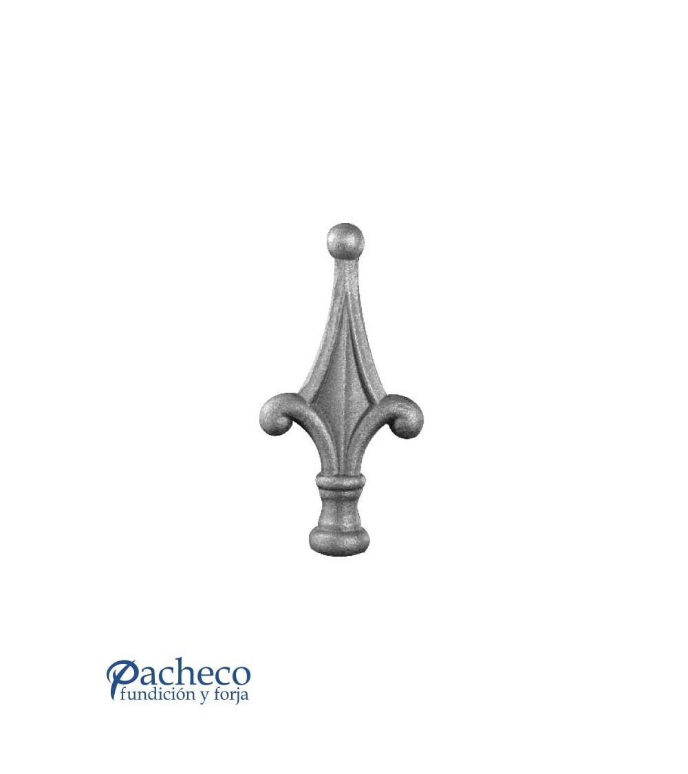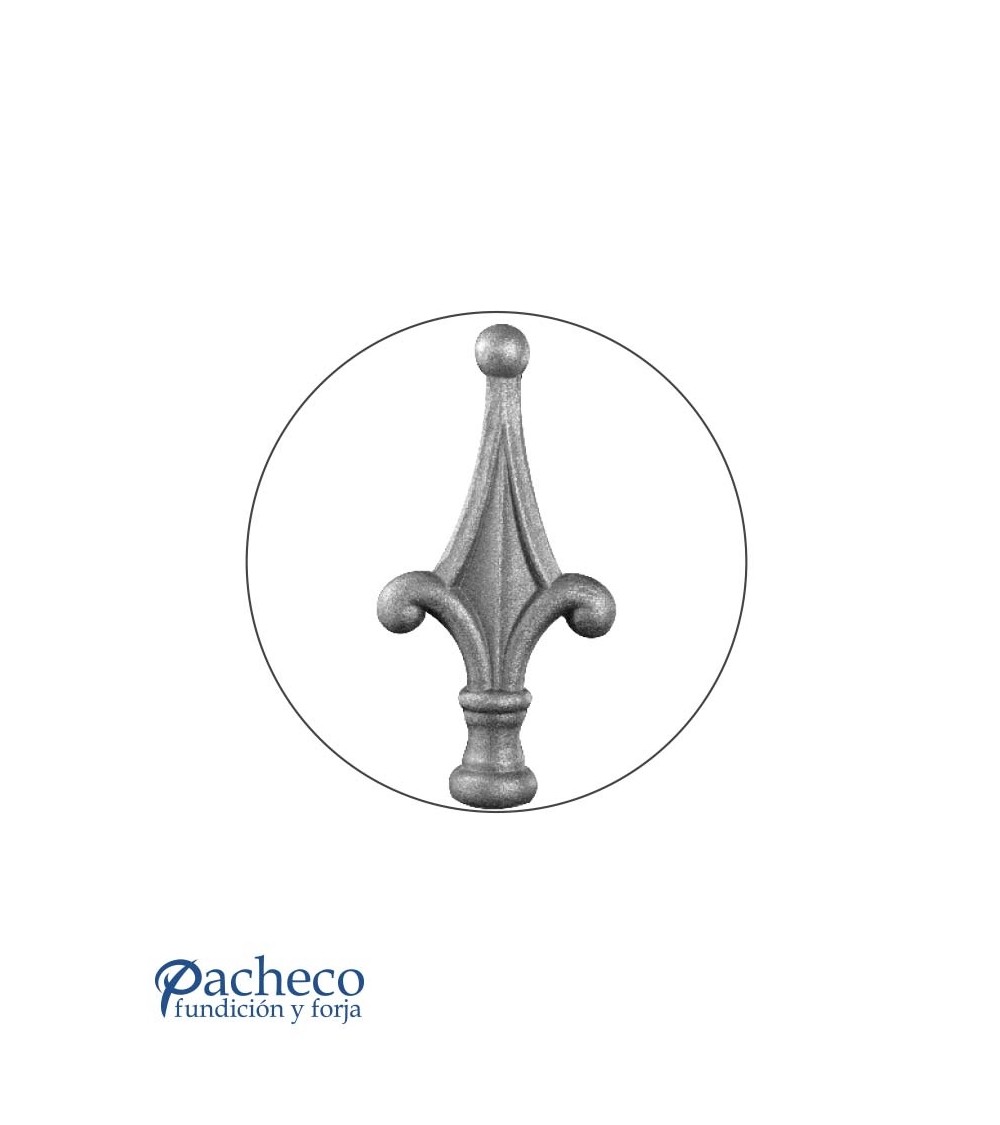 Lanza de hierro forjado utilizado como adorno de forja decorativa fabricado con hierro dulce, maleable y forjado en caliente. Este accesorio en hierro forjado se utiliza como barrotes de forja, verjas de forja. La medida estándar es de redondo de 25 mm / 26 mm Piezas y accesorios para forja a medida, también realizamos cualquier diseño de forja decorativa y forja artística. Consulta a nuestro equipo de diseño especializado. Aquí los límites del metal, los pones tú. Llámanos para informarte al 923 24 33 98 o escríbenos a info@pachecoforja.com