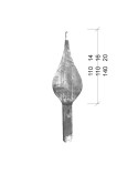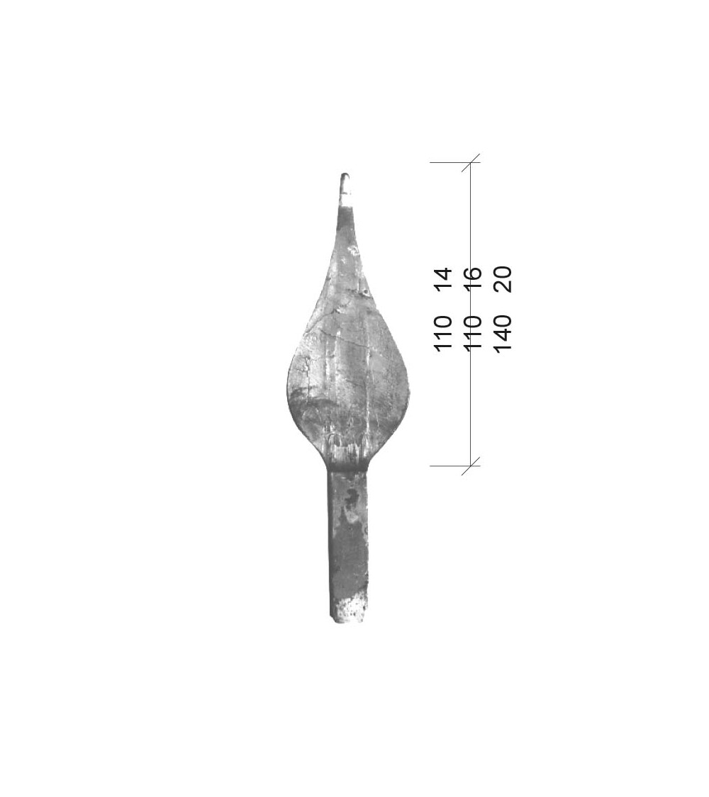 Lanza de hierro forjado con hoja chafada y base cuadrada, utilizada como remate decorativo para barrotes, rejas y verjas de forja con referencias 07091, 07091.01 y 07091.02: