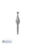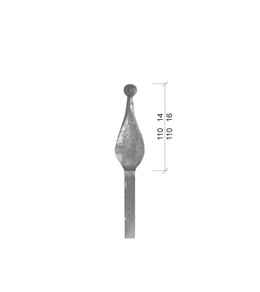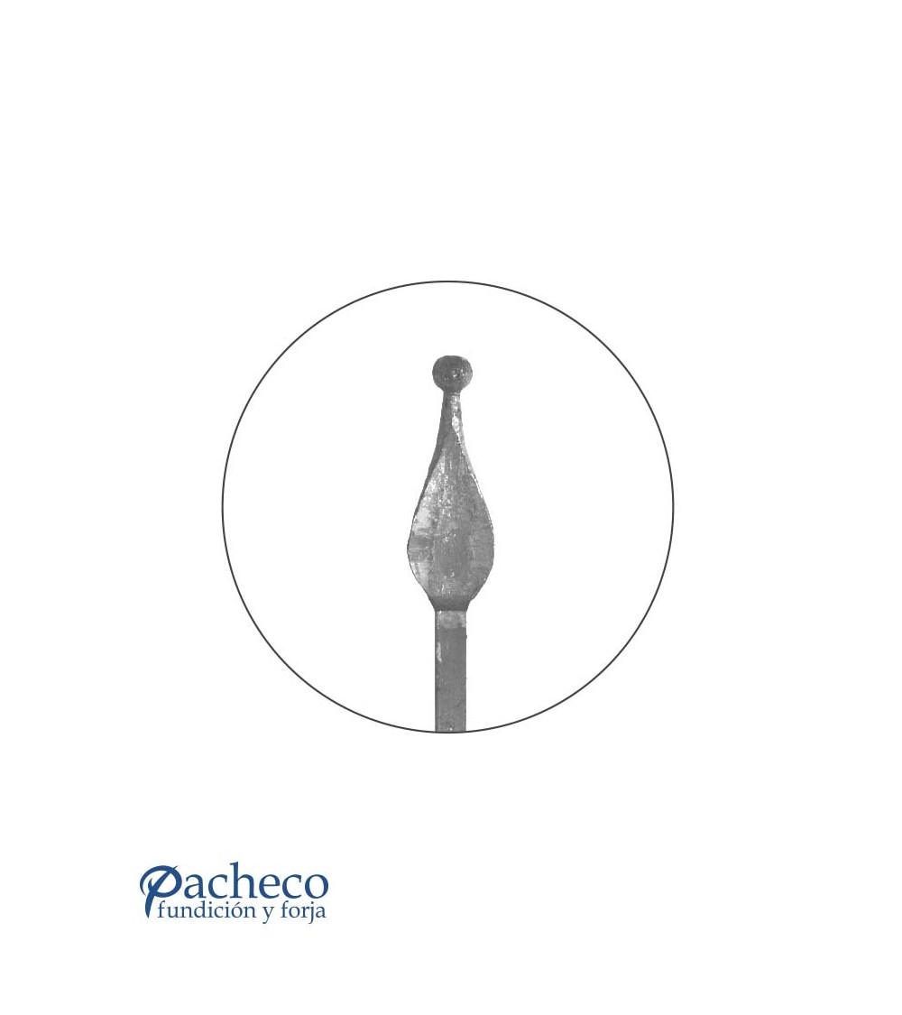 Lanza de hierro forjado con terminación en hoja machada acabada en bola utilizada como adorno de forja decorativa. Fabricada con hierro dulce, maleable y forjado en caliente para la sujeción de rejas o vallas de hierro forjado con referencia 07092 y referencia 07092.01: