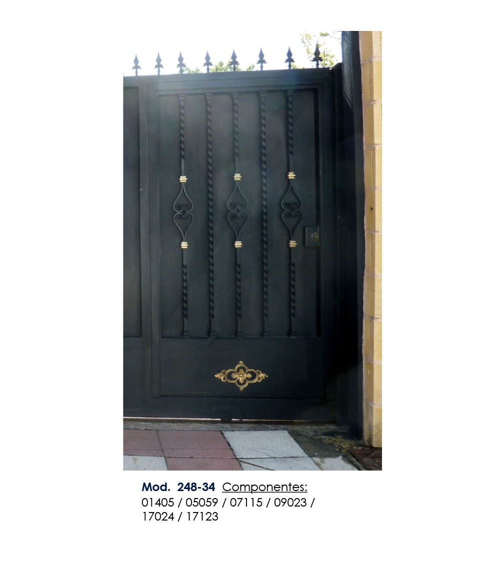 Lanza de hierro forjado con terminación en cruz utilizada como adorno de forja decorativa. Fabricada con hierro dulce, maleable y forjado en caliente para la sujeción de rejas o vallas de hierro forjado con referencia 07115 y referencia 07116: