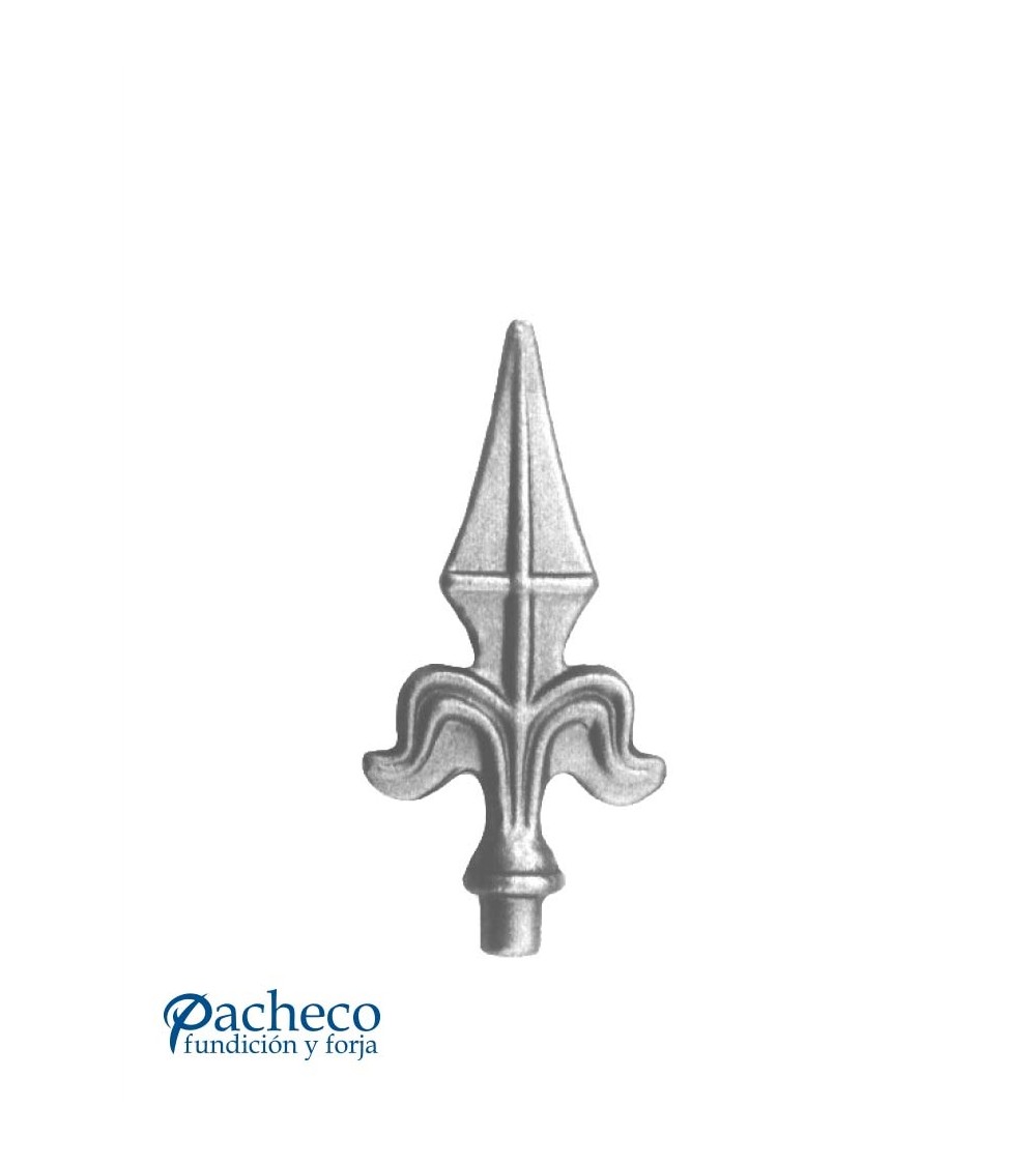 Lanza de hierro forjado utilizado como adorno de forja decorativa fabricado con hierro dulce, maleable y forjado en caliente. Este accesorio en hierro forjado se utiliza como barrotes de forja, verjas de forja. La medida estándar es de 160 mm alto o 130 mm alto. Piezas y accesorios para forja a medida, también realizamos cualquier diseño de forja decorativa y forja artística. Consulta a nuestro equipo de diseño especializado. Aquí los límites del metal, los pones tú. Llámanos para informarte al 923 24 33 98 o escríbenos a info@pachecoforja.com